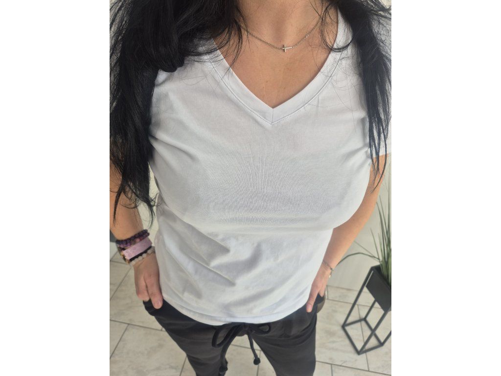 Lehké, pohodlné a neuvěřitelně univerzální – přesně takové je naše bavlněné tričko s výstřihem do V, které si zamilujete na první obléknutí.